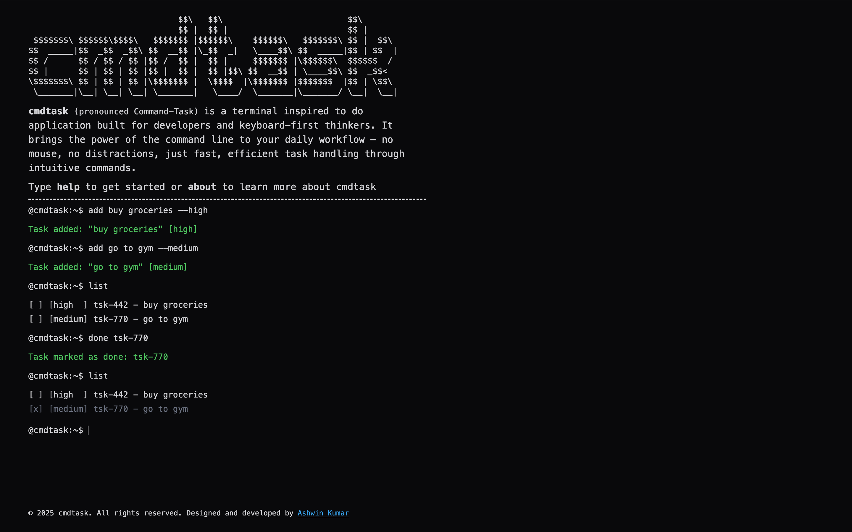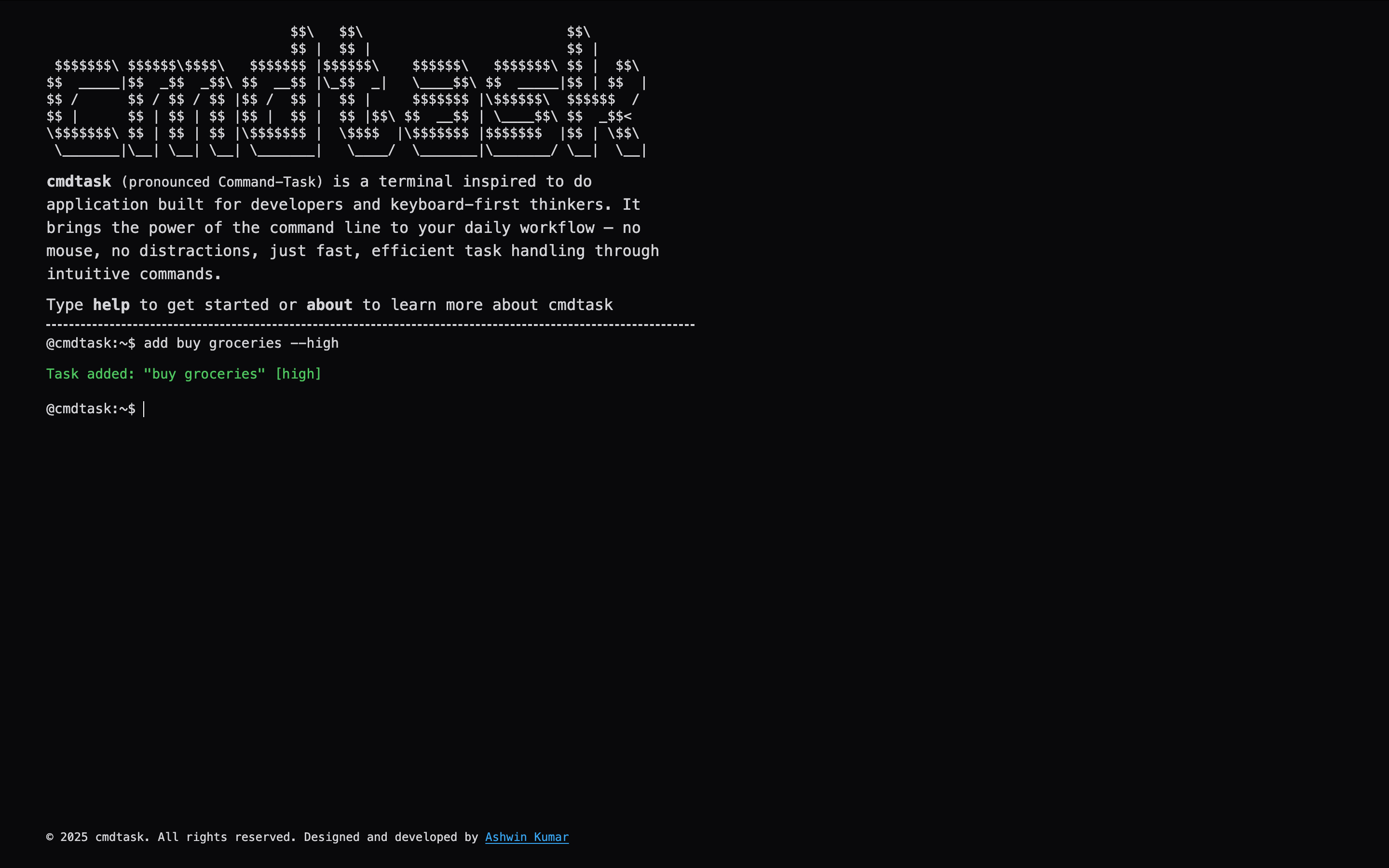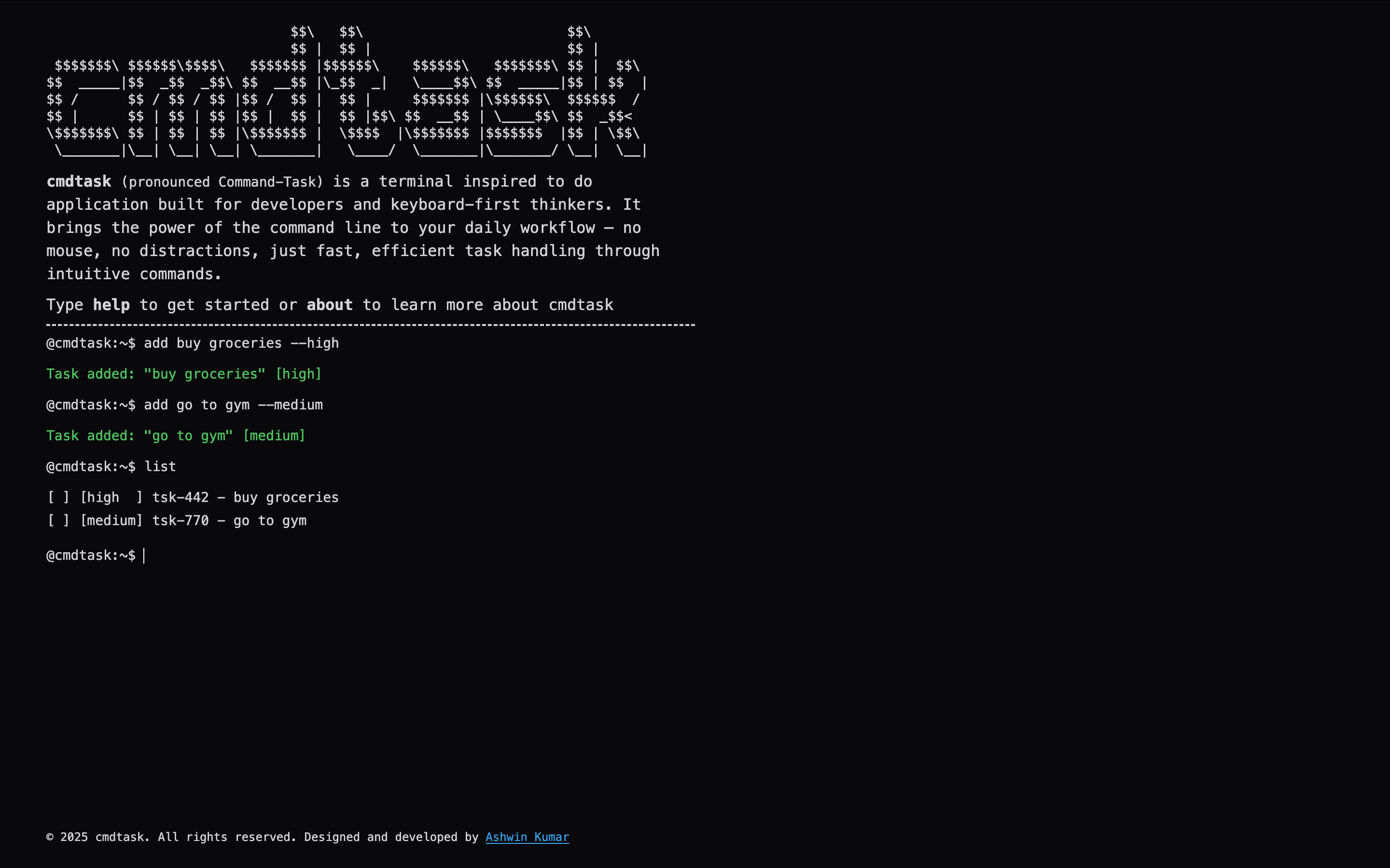 So I built cmdtask - a todo list that lives where I live: in the terminal aesthetic. No context switching, no mouse required, just pure keyboard-driven task management that feels like home for developers.