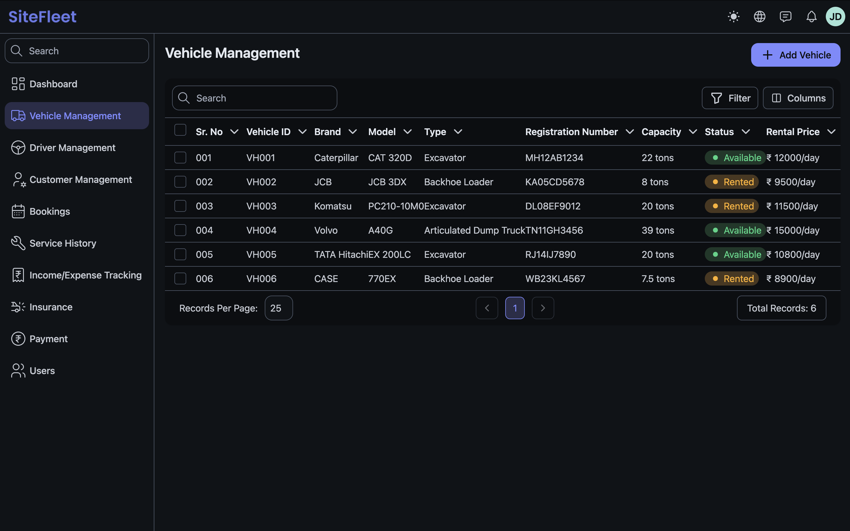 A comprehensive frontend for managing construction vehicle fleets, drivers, and operations