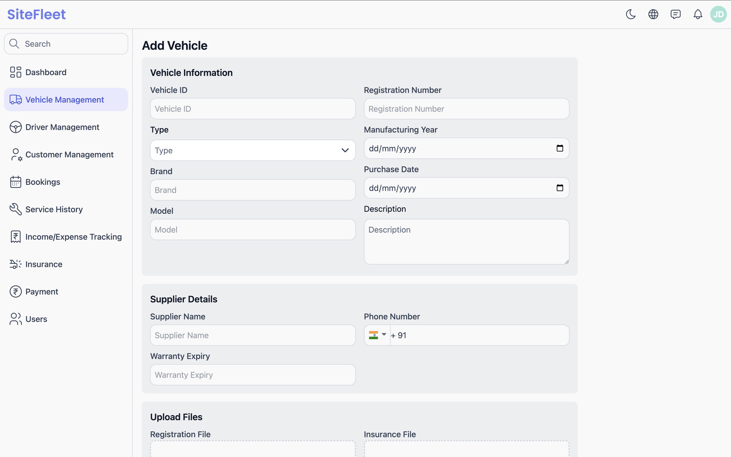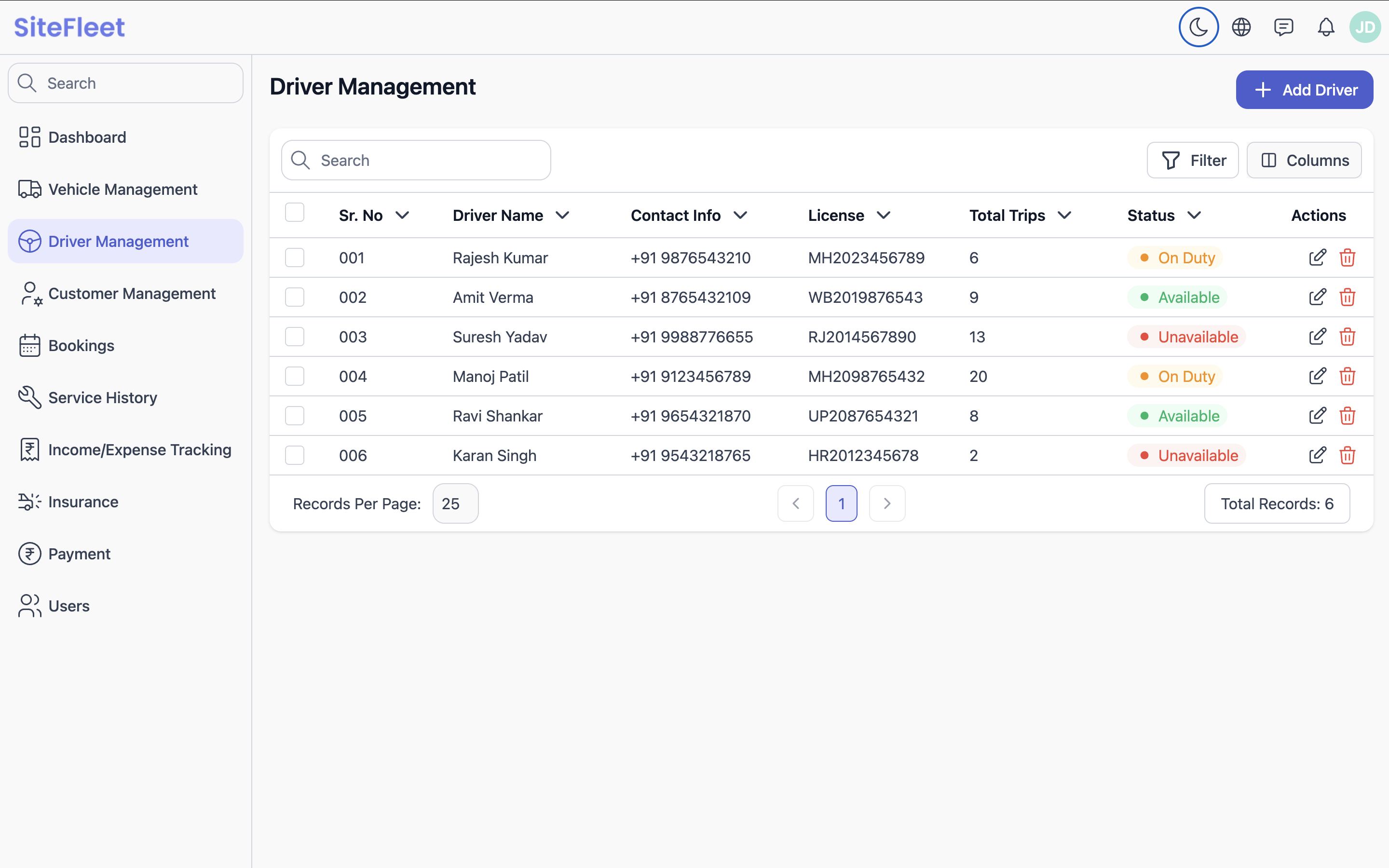 Production-Ready UI: Built with real-world use cases in mind. Every screen, every interaction, every data table is designed for actual daily use by fleet managers and operations teams.