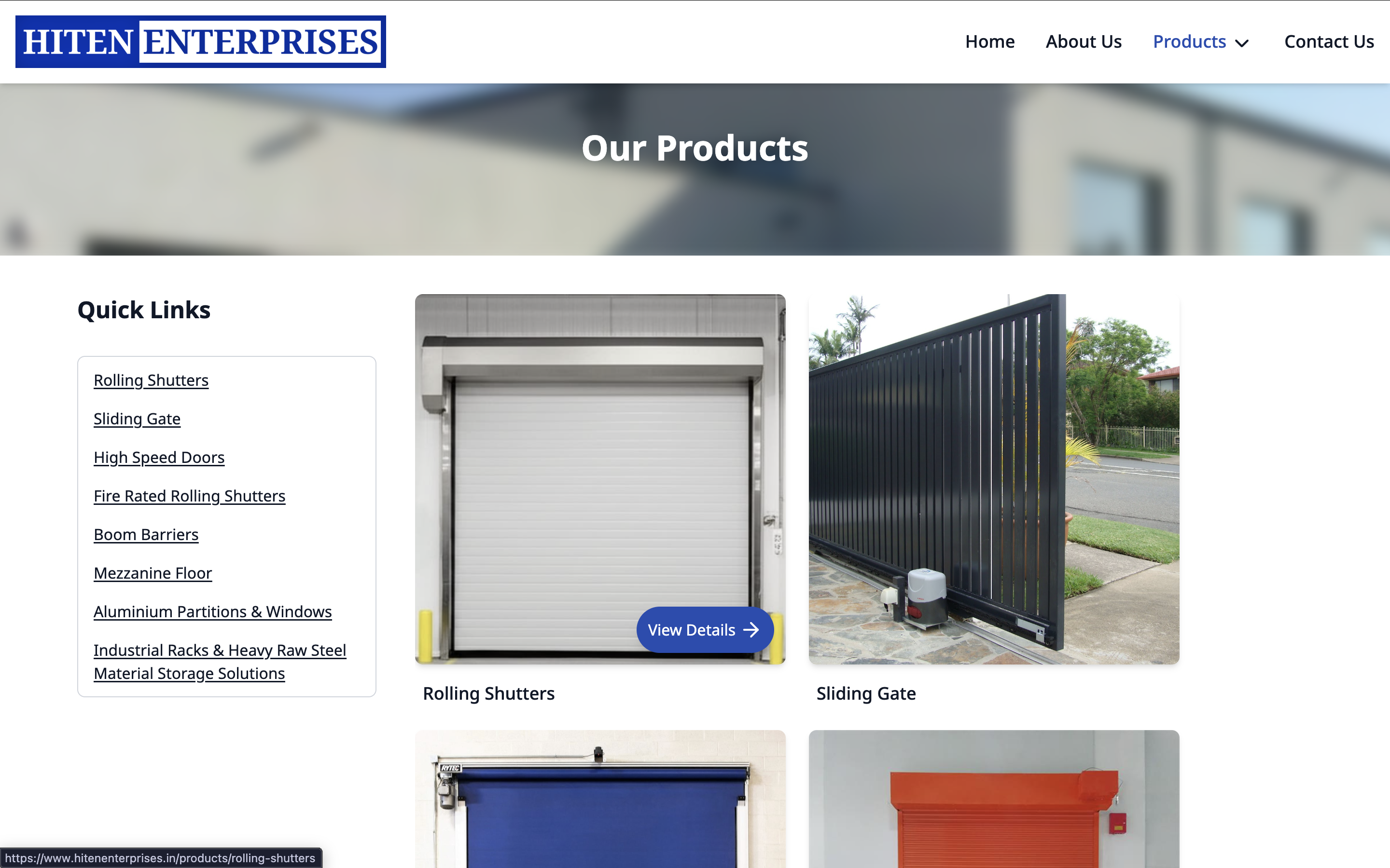 - β’π¦ 8 Product Categories - Rolling shutters, sliding gates, high-speed doors, fire-rated shutters, boom barriers, mezzanine floors, partitions, and storage racks