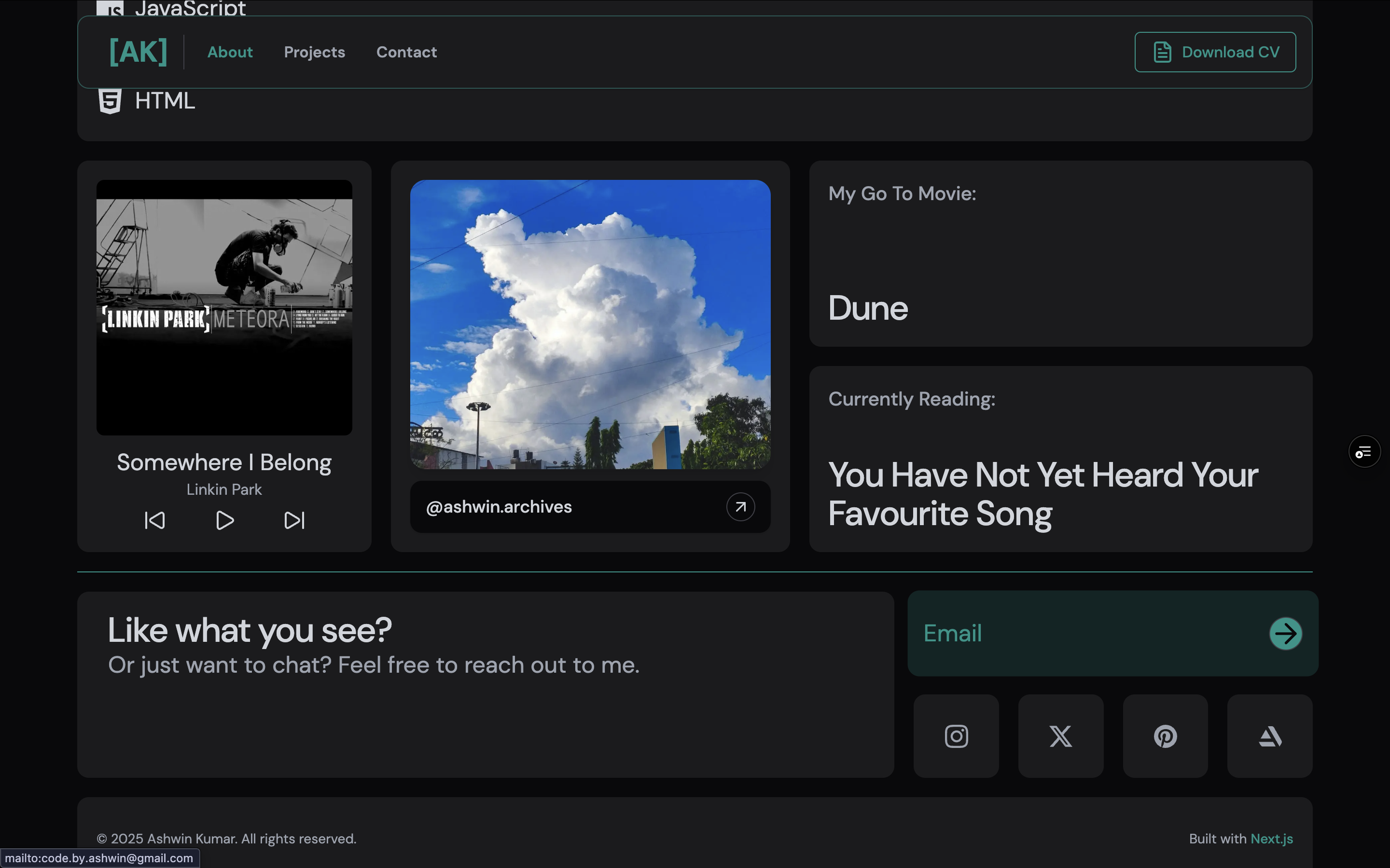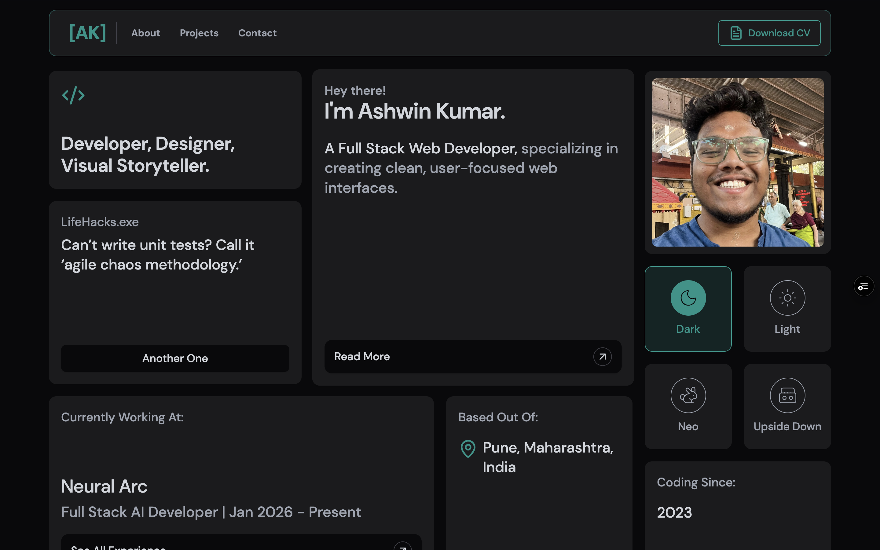 I wanted something different. Something that felt like me - clean, modern, but with personality. I'd been seeing Bento Grid layouts everywhere (Apple's design language, dashboard UIs, modern web apps) and thought: what if I built my entire portfolio around that aesthetic?